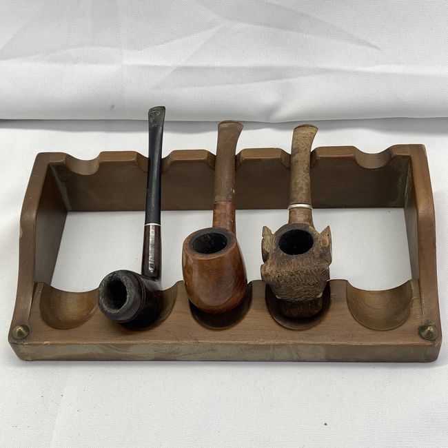 Current Bid: $21.00 [Refresh Price]YOU WILL NEED TO REFRESH THIS PAGE TO SEE UPDATED BID (Log in and this will update automatically) You must LOG IN or REGISTER to see this full page auction listing and bid. Auction is Over Winning Bid Amount: $21.00 **Lot Details: (LOT: U81) - Lot of 3 antique tobacco pipes with wooden pipe stand. Very neat pipes. Log in to add this lot to your watch list or place a bid |