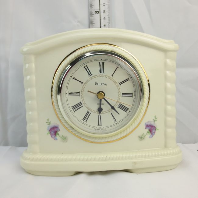 Current Bid: $[Refresh Price]YOU WILL NEED TO REFRESH THIS PAGE TO SEE UPDATED BID (Log in and this will update automatically) You must LOG IN or REGISTER to see this full page auction listing and bid. Auction is Over Winning Bid Amount: $This item did not sell **Lot Details: (LOT: U253) - Bulova porcelain mantle clock. Very pretty. Just installed new battery.. The clock part sits loose in the porcelain hole and was once held in with some foam tape. this will need to be replaces to make it snug again. Log in to add this lot to your watch list or place a bid |