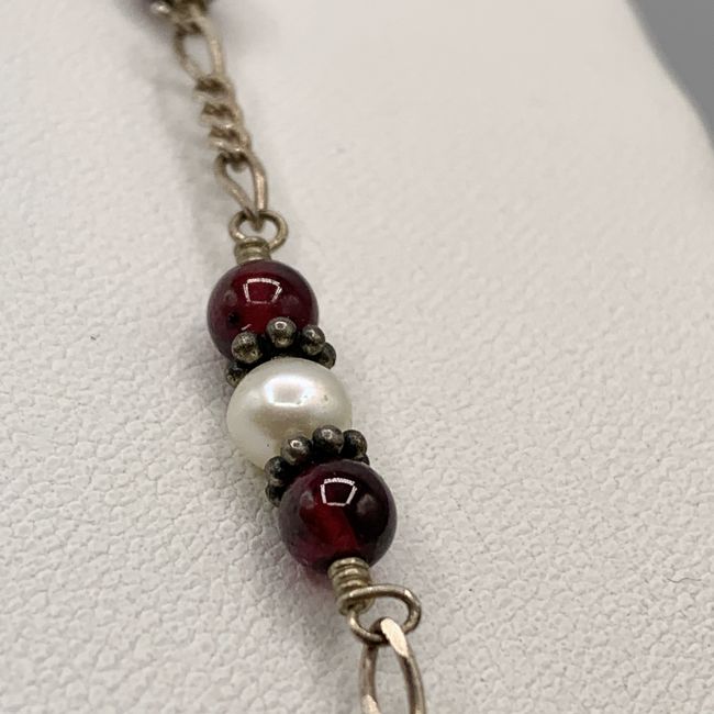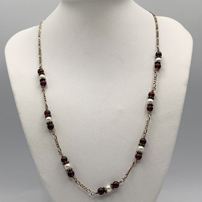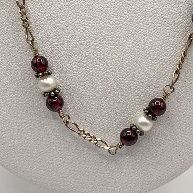 Current Bid: $42.00 [Refresh Price]YOU WILL NEED TO REFRESH THIS PAGE TO SEE UPDATED BID (Log in and this will update automatically) You must LOG IN or REGISTER to see this full page auction listing and bid. Auction is Over Winning Bid Amount: $42.00 **Lot Details: (LOT: U96) - A 17” sterling silver glass pearls and garnet necklace. Marked Italy 925 with a. symbol Log in to add this lot to your watch list or place a bid |