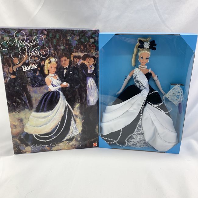 Current Bid: $11.00 [Refresh Price]YOU WILL NEED TO REFRESH THIS PAGE TO SEE UPDATED BID (Log in and this will update automatically) You must LOG IN or REGISTER to see this full page auction listing and bid. Auction is Over Winning Bid Amount: $11.00 **Lot Details: (LOT: U106) - Vintage from 1996, and from the Ballroom Beauties Collection & 2nd Edition, Midnight Waltz Barbie. Gorgeous satin black/white gown with faux pearls with lace highlights including the fan. She is still sealed in her b... Log in to add this lot to your watch list or place a bid |