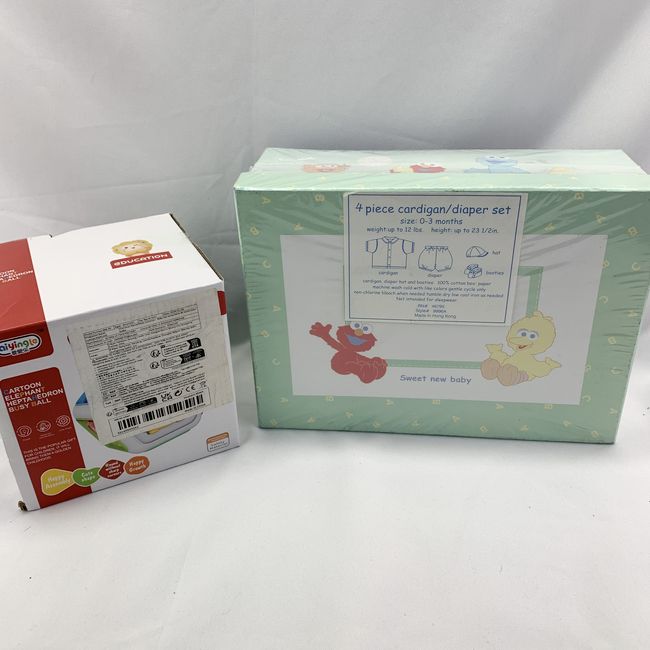 Current Bid: $9.00 [Refresh Price]YOU WILL NEED TO REFRESH THIS PAGE TO SEE UPDATED BID (Log in and this will update automatically) You must LOG IN or REGISTER to see this full page auction listing and bid. Auction is Over Winning Bid Amount: $9.00 **Lot Details: (LOT: U107) - A 4-piece Sesame Street outfit for ages 0-3 months old or weighing up to 12 pounds. Set includes cardigan style top, short pants, booties and cap/hat. Also, a Cartoon Elephant Busy Ball, battery operated child’s to... Log in to add this lot to your watch list or place a bid |