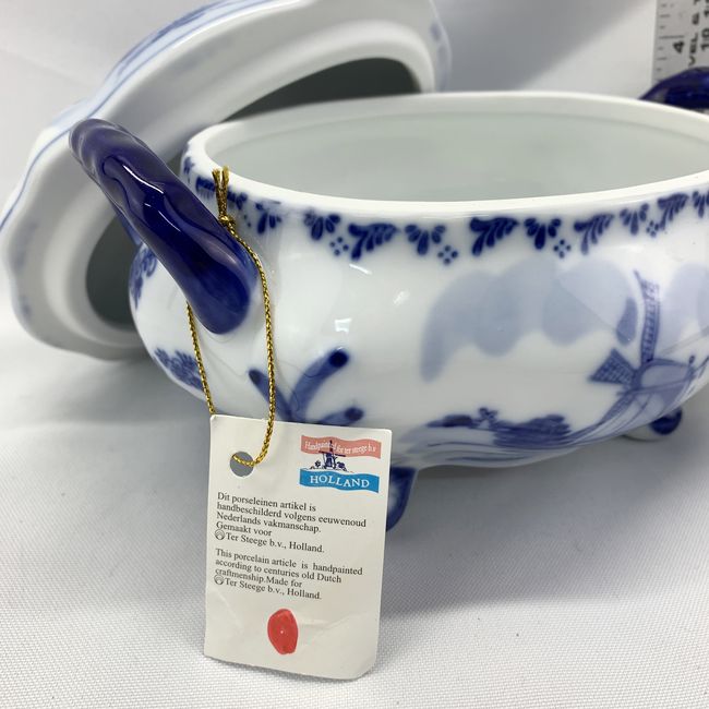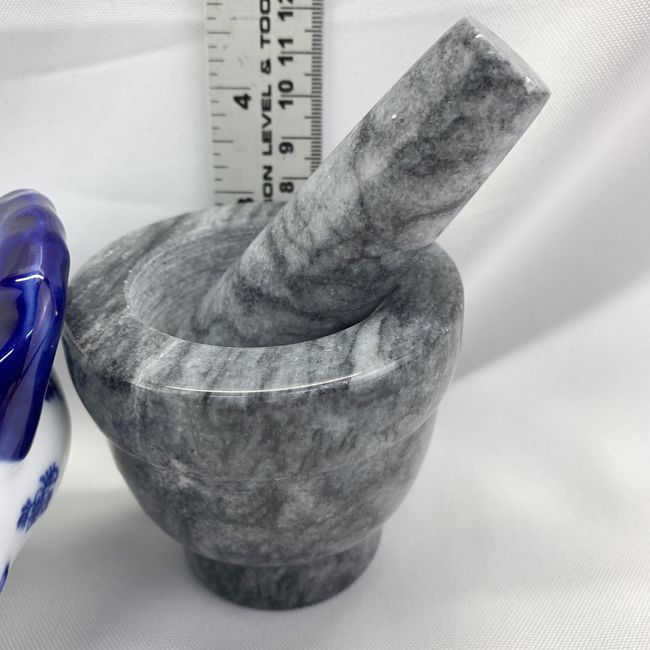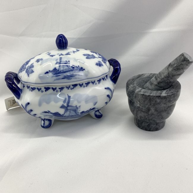 Current Bid: $14.00 [Refresh Price]YOU WILL NEED TO REFRESH THIS PAGE TO SEE UPDATED BID (Log in and this will update automatically) You must LOG IN or REGISTER to see this full page auction listing and bid. Auction is Over Winning Bid Amount: $14.00 **Lot Details: (LOT: U108) - A Delft lidded footed dish made in Holland. 4” wide by 6.5” long & height of 3.5” not including lid. Plus, a small, 3.25” tall with a 2” opening dark grey marble mortar and pestle. There is no damage to an... Log in to add this lot to your watch list or place a bid |