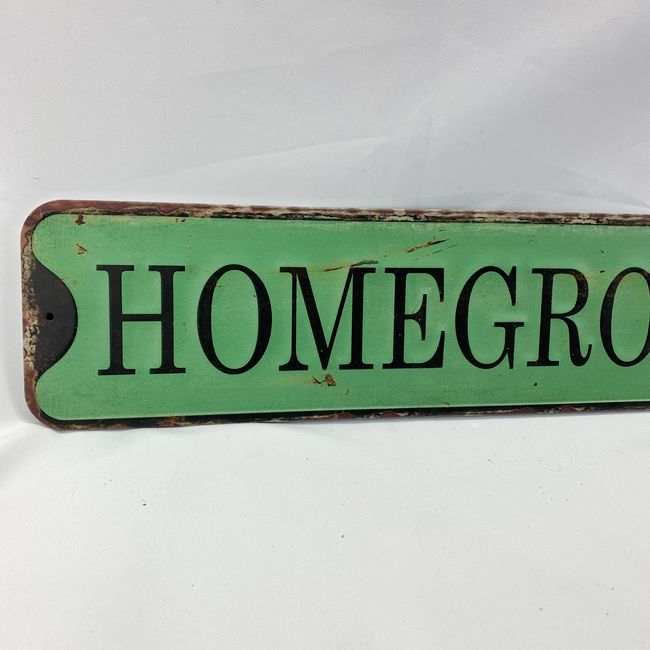 Current Bid: $7.00 [Refresh Price]YOU WILL NEED TO REFRESH THIS PAGE TO SEE UPDATED BID (Log in and this will update automatically) You must LOG IN or REGISTER to see this full page auction listing and bid. Auction is Over Winning Bid Amount: $7.00 **Lot Details: (LOT: U119) - Homegrown Metal Wall Sign 24" L x 5" H Log in to add this lot to your watch list or place a bid |
