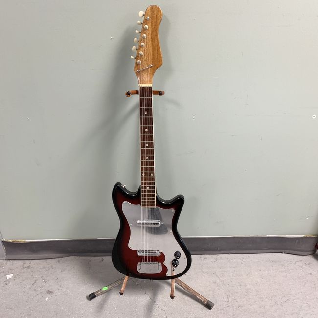 Current Bid: $53.00 [Refresh Price]YOU WILL NEED TO REFRESH THIS PAGE TO SEE UPDATED BID (Log in and this will update automatically) You must LOG IN or REGISTER to see this full page auction listing and bid. Auction is Over Winning Bid Amount: $53.00 **Lot Details: (LOT: U123) - This is a vintage 1960s Lindell (Teisco) electric guitar, featuring a two~color sunburst finish. It is a Japanese~made (MIJ) vintage instrument. This needs some TLC it works a little but not enough to play it could use some work! Log in to add this lot to your watch list or place a bid |