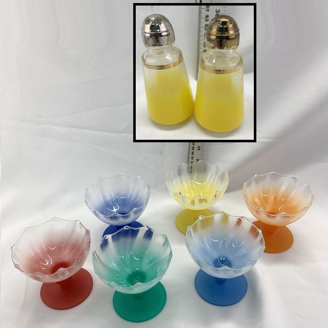 Current Bid: $9.00 [Refresh Price]YOU WILL NEED TO REFRESH THIS PAGE TO SEE UPDATED BID (Log in and this will update automatically) You must LOG IN or REGISTER to see this full page auction listing and bid. Auction is Over Winning Bid Amount: $9.00 **Lot Details: (LOT: U314) - Blendo yellow Salt and Pepper, multi coloured sherbert dishes. Log in to add this lot to your watch list or place a bid |
