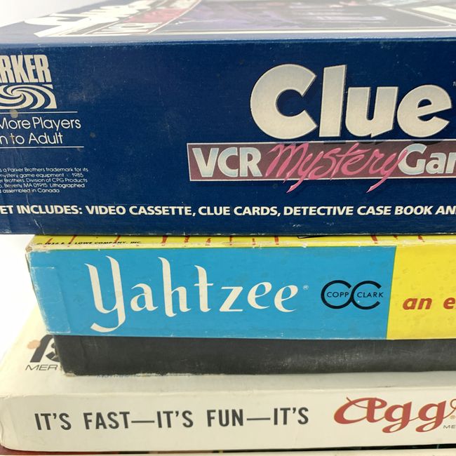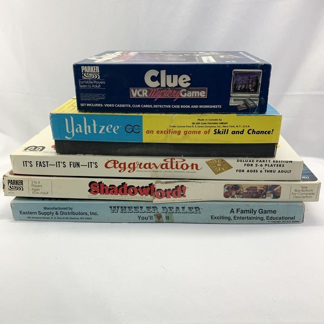 Current Bid: $7.00 [Refresh Price]YOU WILL NEED TO REFRESH THIS PAGE TO SEE UPDATED BID (Log in and this will update automatically) You must LOG IN or REGISTER to see this full page auction listing and bid. Auction is Over Winning Bid Amount: $7.00 **Lot Details: (LOT: U325) - Vintage Board Games Great for a collector who needs spare parts or to complete a set a. Parker Bors VCR Mystery Game ''Clue'', case book and worksheets b. Yahtzee, #707 Complete c. Mertrex ''Aggrava... Log in to add this lot to your watch list or place a bid |