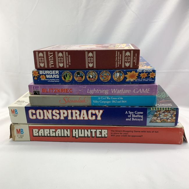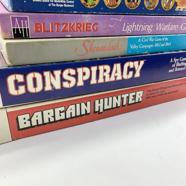 Current Bid: $[Refresh Price]YOU WILL NEED TO REFRESH THIS PAGE TO SEE UPDATED BID (Log in and this will update automatically) You must LOG IN or REGISTER to see this full page auction listing and bid. Auction is Over Winning Bid Amount: $This item did not sell **Lot Details: (LOT: U322) - Vintage Board Games: Great for Collector, great graphics on Boxes, some complete some missing pcs. a. Conspiracy - Complete b. Shenandoah - one plastic tray missing. c. Blitzkrieg. 3 boards, cards, time record sheet ... Log in to add this lot to your watch list or place a bid |