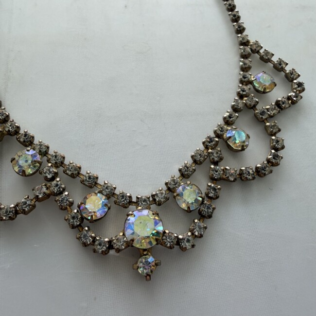 Current Bid: $13.00 [Refresh Price]YOU WILL NEED TO REFRESH THIS PAGE TO SEE UPDATED BID (Log in and this will update automatically) You must LOG IN or REGISTER to see this full page auction listing and bid. Auction is Over Winning Bid Amount: $13.00 **Lot Details: (LOT: U326) - Signed antique AB rhinestone necklace. Signed LA ROCO no missing stones. very nice Log in to add this lot to your watch list or place a bid |