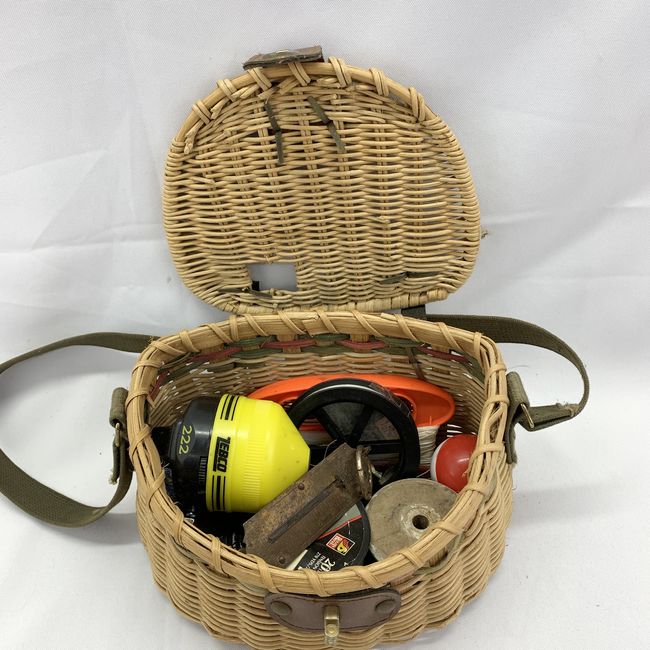 Current Bid: $17.00 [Refresh Price]YOU WILL NEED TO REFRESH THIS PAGE TO SEE UPDATED BID (Log in and this will update automatically) You must LOG IN or REGISTER to see this full page auction listing and bid. Auction is Over Winning Bid Amount: $17.00 **Lot Details: (LOT: U127) - Vintage wicker fishing creel basket, 8x7x5 inches with canvas strap and leather fastener, includes fishing lines, antique hand scale and more. Log in to add this lot to your watch list or place a bid |
