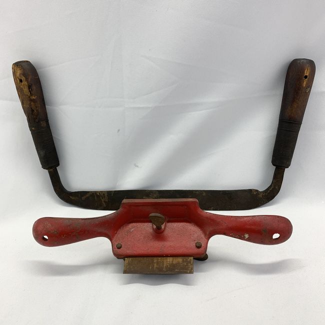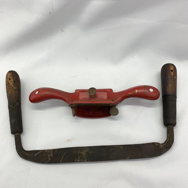 Current Bid: $13.00 [Refresh Price]YOU WILL NEED TO REFRESH THIS PAGE TO SEE UPDATED BID (Log in and this will update automatically) You must LOG IN or REGISTER to see this full page auction listing and bid. Auction is Over Winning Bid Amount: $13.00 **Lot Details: (LOT: U132) - Red spoke shave and a vintage draw knife, 3 inch blade red metal spoke shave No. 80 and an old wood handle draw knife with 10 inch blade. Log in to add this lot to your watch list or place a bid |