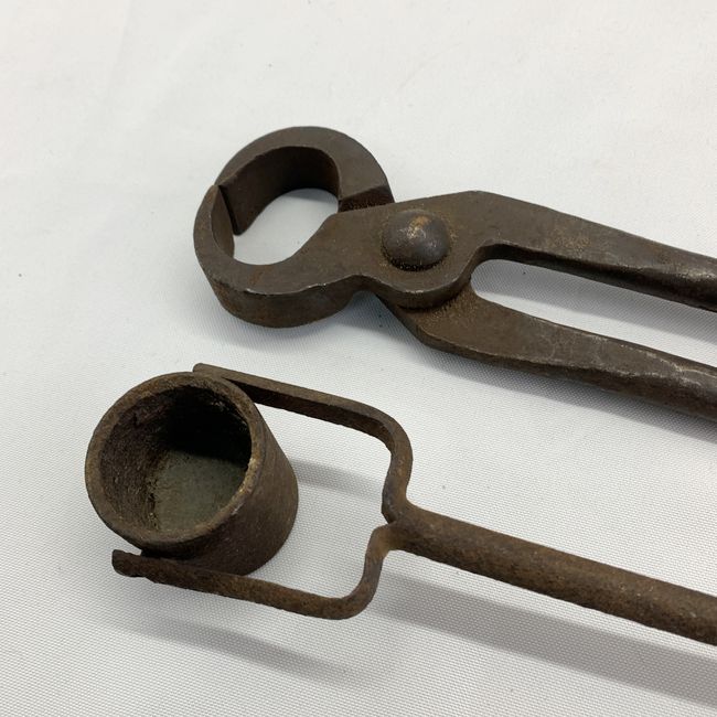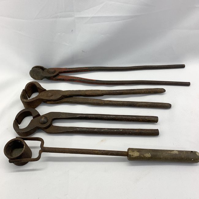 Current Bid: $17.00 [Refresh Price]YOU WILL NEED TO REFRESH THIS PAGE TO SEE UPDATED BID (Log in and this will update automatically) You must LOG IN or REGISTER to see this full page auction listing and bid. Auction is Over Winning Bid Amount: $17.00 **Lot Details: (LOT: U133) - Four vintage blacksmith forge tools including two pincers, a ladle and pick up tongs. Log in to add this lot to your watch list or place a bid |
