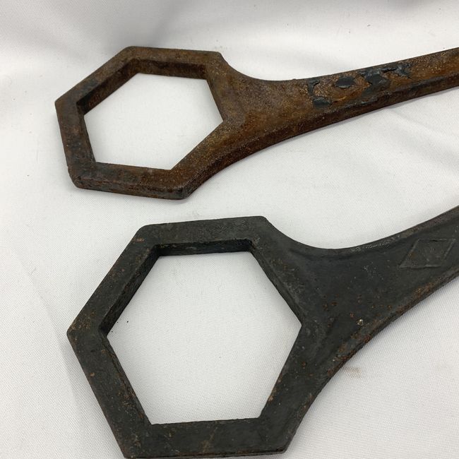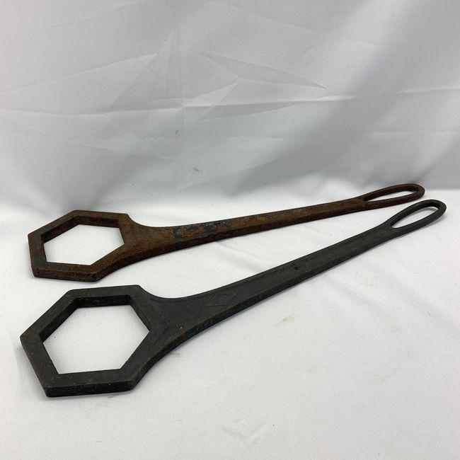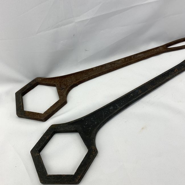 Current Bid: $19.00 [Refresh Price]YOU WILL NEED TO REFRESH THIS PAGE TO SEE UPDATED BID (Log in and this will update automatically) You must LOG IN or REGISTER to see this full page auction listing and bid. Auction is Over Winning Bid Amount: $19.00 **Lot Details: (LOT: U135) - Two wagon wheel hub wrenches, six sided, 3 ½ inch diameter and 20 inches long. Log in to add this lot to your watch list or place a bid |