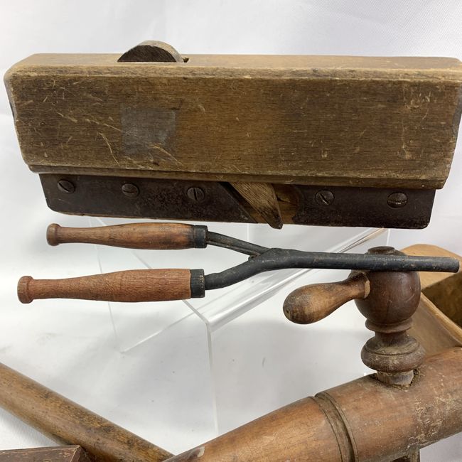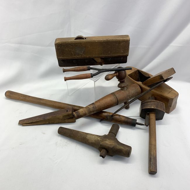 Current Bid: $17.00 [Refresh Price]YOU WILL NEED TO REFRESH THIS PAGE TO SEE UPDATED BID (Log in and this will update automatically) You must LOG IN or REGISTER to see this full page auction listing and bid. Auction is Over Winning Bid Amount: $17.00 **Lot Details: (LOT: U144) - Lot of vintage wooden hand tools including coffin shaped hand plane, step cove plane with no blade, wooden adjustable scribe, 18 inch Amish barn scribe, hand curler, pair of survey stakes and two barrel spigots. Log in to add this lot to your watch list or place a bid |