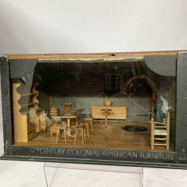 Current Bid: $17.50 [Refresh Price]YOU WILL NEED TO REFRESH THIS PAGE TO SEE UPDATED BID (Log in and this will update automatically) You must LOG IN or REGISTER to see this full page auction listing and bid. Auction is Over Winning Bid Amount: $17.50 **Lot Details: (LOT: U146) - **LIGHTS UP** Salesman’s sample 17th century Colonial Furniture Co. diorama, measures 18x13x10 inches, light up pioneer scene with samples of 17th century colonial furniture, light works, cloth electric cord in goo... Log in to add this lot to your watch list or place a bid |