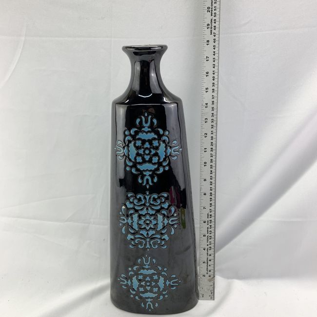 Current Bid: $7.00 [Refresh Price]YOU WILL NEED TO REFRESH THIS PAGE TO SEE UPDATED BID (Log in and this will update automatically) You must LOG IN or REGISTER to see this full page auction listing and bid. Auction is Over Winning Bid Amount: $7.00 **Lot Details: (LOT: U153) - An 18 inch tall designer vase of cobalt blue woth Moroccan tile style geometric designs in a lighter blue. Perfect for dried flowers or fresh. No chips or cracks. No makers mark, but appears to be pottery from looki... Log in to add this lot to your watch list or place a bid |