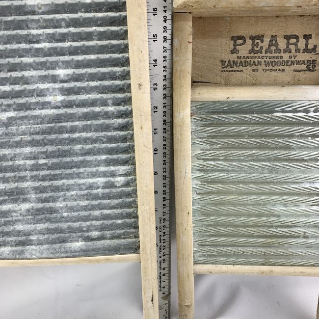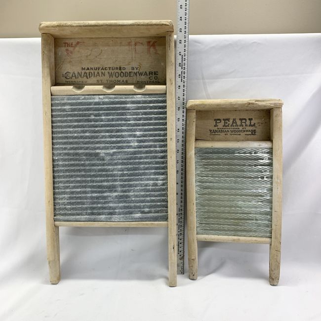 Current Bid: $15.00 [Refresh Price]YOU WILL NEED TO REFRESH THIS PAGE TO SEE UPDATED BID (Log in and this will update automatically) You must LOG IN or REGISTER to see this full page auction listing and bid. Auction is Over Winning Bid Amount: $15.00 **Lot Details: (LOT: U154) - TWO antique wash boards. The large one is a Canuck Globe model manufactured by Canadian Wooden Wear as is clearly stamped on it. The other one is the same manufacturer, but it is the PEARL model. Both are nice and so... Log in to add this lot to your watch list or place a bid |