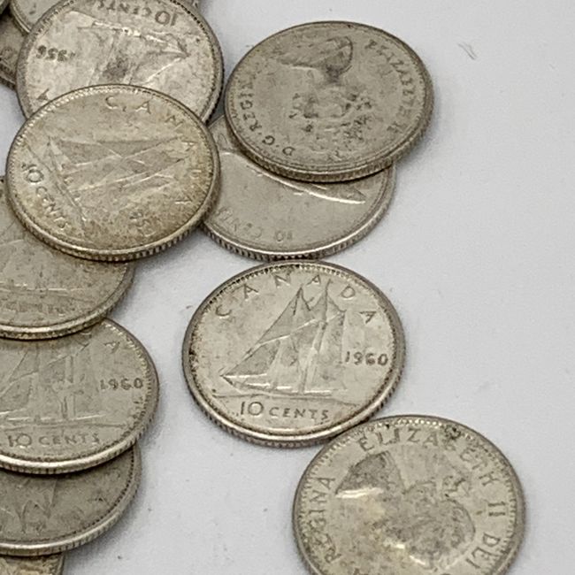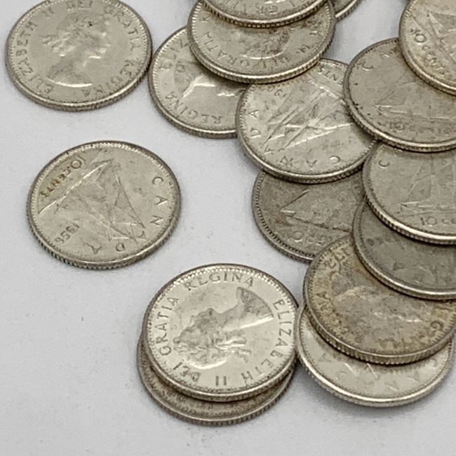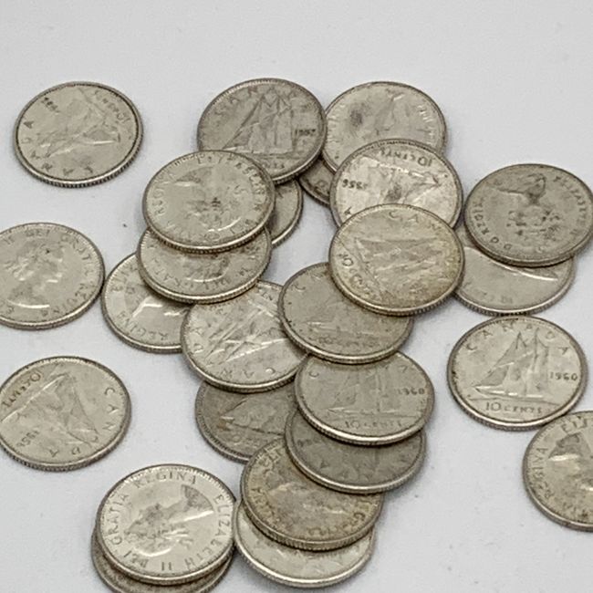 Current Bid: $141.50 [Refresh Price]YOU WILL NEED TO REFRESH THIS PAGE TO SEE UPDATED BID (Log in and this will update automatically) You must LOG IN or REGISTER to see this full page auction listing and bid. Auction is Over Winning Bid Amount: $141.50 **Lot Details: (LOT: U173) - 25 x Surprise bag of all SILVER 1967 or older Canadian DIMES! All silver and all unsorted! All have good readable dates as well. First photo is not of this bag but the other three photos are and give you a sneak pea... Log in to add this lot to your watch list or place a bid |