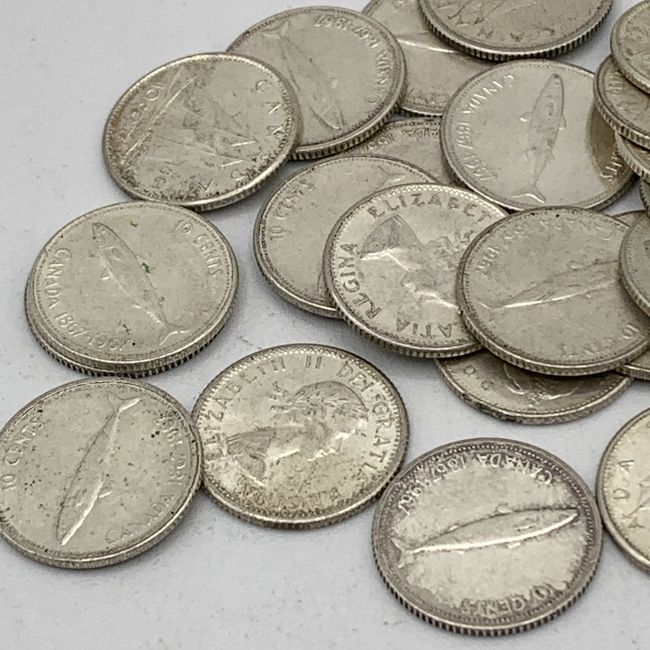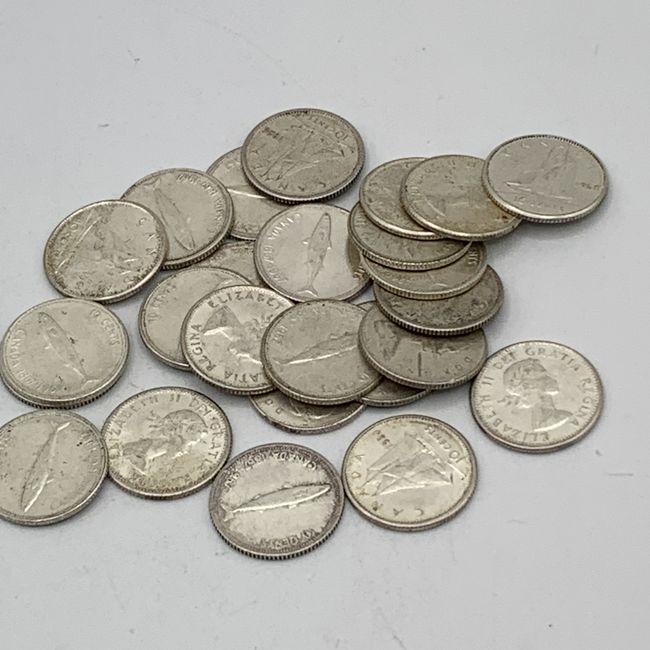 Current Bid: $140.00 [Refresh Price]YOU WILL NEED TO REFRESH THIS PAGE TO SEE UPDATED BID (Log in and this will update automatically) You must LOG IN or REGISTER to see this full page auction listing and bid. Auction is Over Winning Bid Amount: $140.00 **Lot Details: (LOT: U177) - 25 x Surprise bag of all SILVER 1967 or older Canadian DIMES! All silver and all unsorted! All have good readable dates as well. First photo is not of this bag but the other three photos are and give you a sneak peak... Log in to add this lot to your watch list or place a bid |