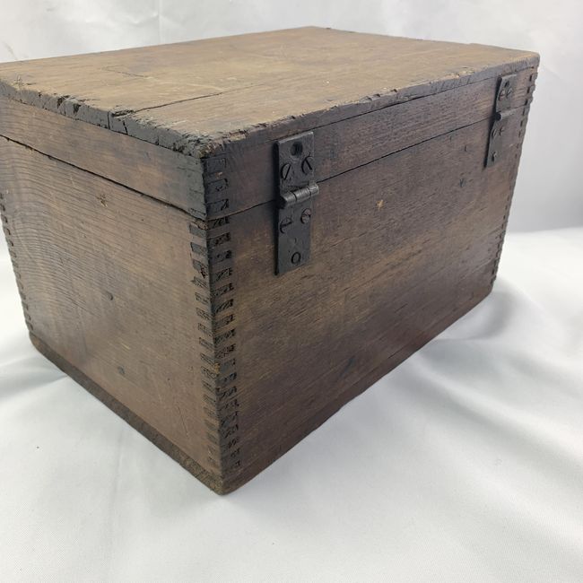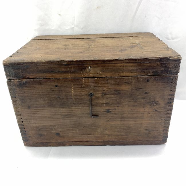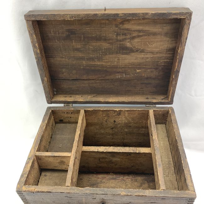Current Bid: $29.00 [Refresh Price]YOU WILL NEED TO REFRESH THIS PAGE TO SEE UPDATED BID (Log in and this will update automatically) You must LOG IN or REGISTER to see this full page auction listing and bid. Auction is Over Winning Bid Amount: $29.00 **Lot Details: (LOT: V40) - Dupont Explosives wooden box. Great as a storage/document box. Measures 13.5” wide, 9.5” deep and 9” high. Nicely dovetailed with interior compartments, old hinges and hook & eye closure. Guessing pine. Marked f... Log in to add this lot to your watch list or place a bid |