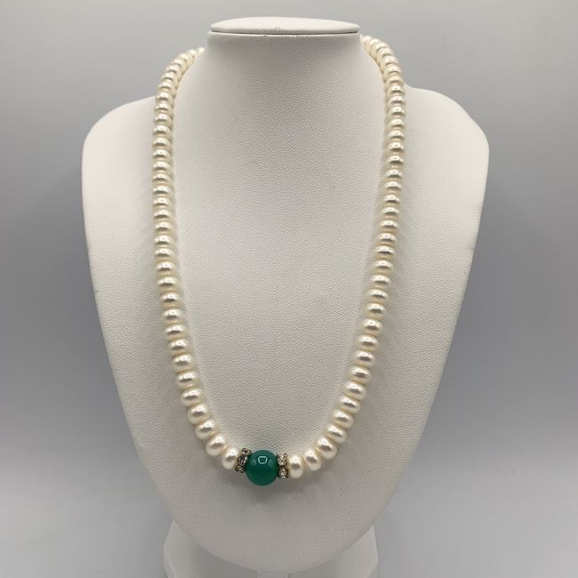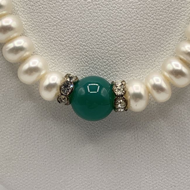 Current Bid: $46.00 [Refresh Price]YOU WILL NEED TO REFRESH THIS PAGE TO SEE UPDATED BID (Log in and this will update automatically) You must LOG IN or REGISTER to see this full page auction listing and bid. Auction is Over Winning Bid Amount: $46.00 **Lot Details: (LOT: V44) - Bright White Genuine Pearls 17" with Jade centre ball Necklace encrusted with sparkling stones and lobster claw closure Log in to add this lot to your watch list or place a bid |