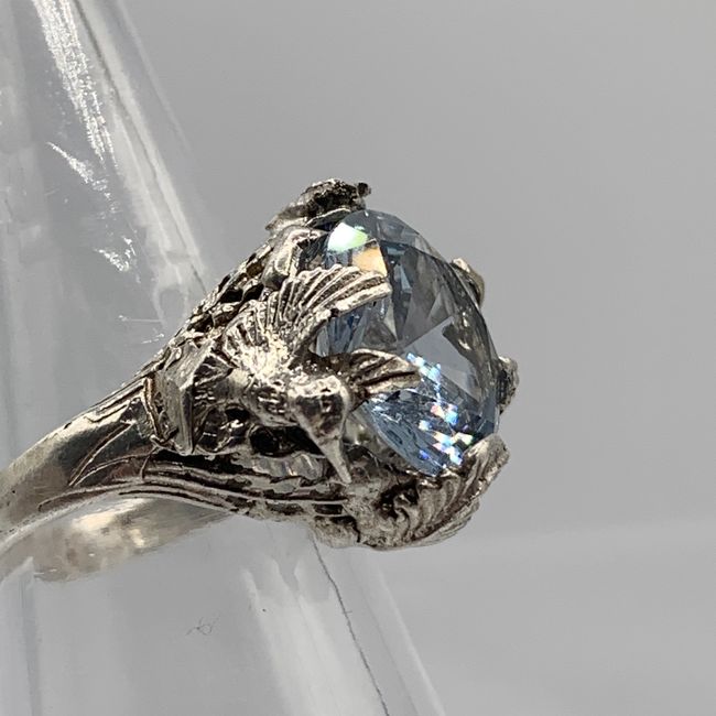 Current Bid: $99.00 [Refresh Price]YOU WILL NEED TO REFRESH THIS PAGE TO SEE UPDATED BID (Log in and this will update automatically) You must LOG IN or REGISTER to see this full page auction listing and bid. Auction is Over Winning Bid Amount: $99.00 **Lot Details: (LOT: V49) - Twin Hummingbird Leaf Sterling AquaMarine Sky Blue faceted Ring, size 7.25 And Verified Sterling Log in to add this lot to your watch list or place a bid |
