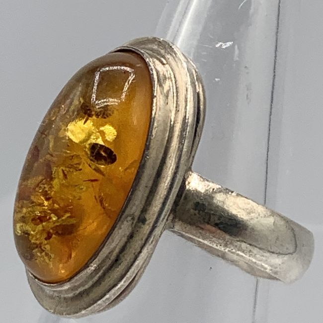 Current Bid: $22.00 [Refresh Price]YOU WILL NEED TO REFRESH THIS PAGE TO SEE UPDATED BID (Log in and this will update automatically) You must LOG IN or REGISTER to see this full page auction listing and bid. Auction is Over Winning Bid Amount: $22.00 **Lot Details: (LOT: V58) - Sterling Amber 3 Hallmark thick band Ring, exterior outer rim bottom showing what looks like "O' "NS" 925, patina has been left in original vintage condition, size 8 to 8.25 due to wide band And Verified S... Log in to add this lot to your watch list or place a bid |