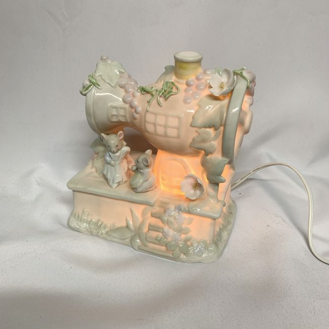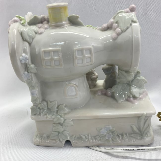 Current Bid: $25.00 [Refresh Price]YOU WILL NEED TO REFRESH THIS PAGE TO SEE UPDATED BID (Log in and this will update automatically) You must LOG IN or REGISTER to see this full page auction listing and bid. Auction is Over Winning Bid Amount: $25.00 **Lot Details: (LOT: V61) - Vintage LightUp ''Old Sewing Machine House'' Lamp Light with roll off on switch, working, loads of detail including the flowers no chips, well looked after, 6.5'' wide x 6.75'' high x 4''... Log in to add this lot to your watch list or place a bid |