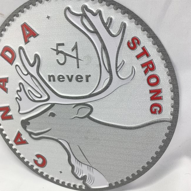 Current Bid: $7.00 [Refresh Price]YOU WILL NEED TO REFRESH THIS PAGE TO SEE UPDATED BID (Log in and this will update automatically) You must LOG IN or REGISTER to see this full page auction listing and bid. Auction is Over Winning Bid Amount: $7.00 **Lot Details: (LOT: V82) - All metal 12" Round wall or shelf sign, "Canada Strong" Log in to add this lot to your watch list or place a bid |