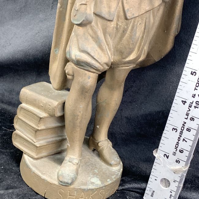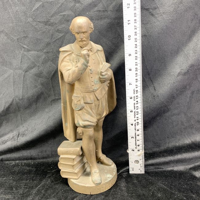 Current Bid: $20.07 [Refresh Price]YOU WILL NEED TO REFRESH THIS PAGE TO SEE UPDATED BID (Log in and this will update automatically) You must LOG IN or REGISTER to see this full page auction listing and bid. Auction is Over Winning Bid Amount: $20.07 **Lot Details: (LOT: V140) - Vintage William Shakespeare, dating around 1890, made of heavy metal/spelter with gold bronze finish. 12''H Log in to add this lot to your watch list or place a bid |