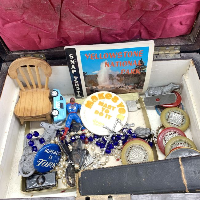 Current Bid: $7.00 [Refresh Price]YOU WILL NEED TO REFRESH THIS PAGE TO SEE UPDATED BID (Log in and this will update automatically) You must LOG IN or REGISTER to see this full page auction listing and bid. Auction is Over Winning Bid Amount: $7.00 **Lot Details: (LOT: V143) - Junk drawer lot in a cool old box. Some neat vintage and possibly some antique stuff in here too. Log in to add this lot to your watch list or place a bid |