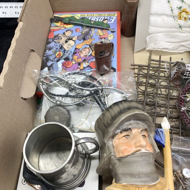 Current Bid: $11.00 [Refresh Price]YOU WILL NEED TO REFRESH THIS PAGE TO SEE UPDATED BID (Log in and this will update automatically) You must LOG IN or REGISTER to see this full page auction listing and bid. Auction is Over Winning Bid Amount: $11.00 **Lot Details: (LOT: V145) - Another JUNK DRAWER lot full of nice old items. Log in to add this lot to your watch list or place a bid |
