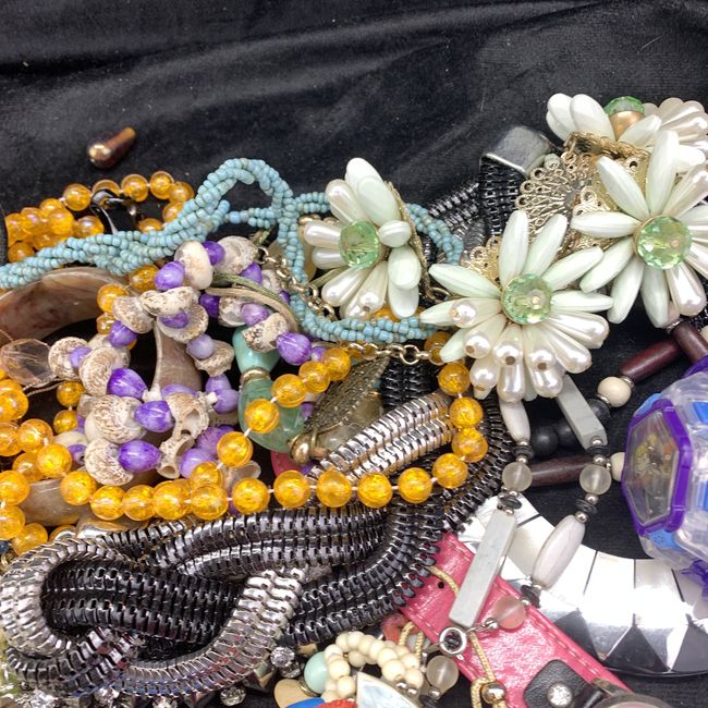 Current Bid: $11.00 [Refresh Price]YOU WILL NEED TO REFRESH THIS PAGE TO SEE UPDATED BID (Log in and this will update automatically) You must LOG IN or REGISTER to see this full page auction listing and bid. Auction is Over Winning Bid Amount: $11.00 **Lot Details: (LOT: V148) - Lot of vintage costume jewelry Log in to add this lot to your watch list or place a bid |