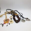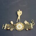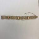 ![]() | (LOT: S261) - Vintage Brooch and Bracelet. Metal Stamped Enameled C-Clasp fashionista Brooch. The Bracelet has mother of pearl chunks and faceted glass beads. Bracelet is approx. 8" long. | ||