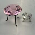 ![]() | (LOT: S254) - A pair of diamond shaped faceted crystals on stands. They are gorgeous when they catch the sunlight. The big pink one has a 4" top diameter. | ||