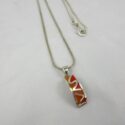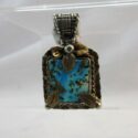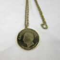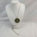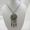 ![]() | (LOT: L249) - A necklace with a pendant made from a 1937 Indian head nickel. There is a buffalo on the back of the coin. The metal feathers and turquoise stones add to the native flavour of this necklace. The chain is 22 inches lo... | ||