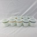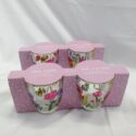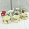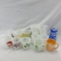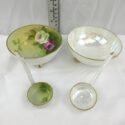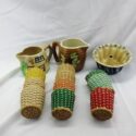 ![]() | (LOT: L278) - two vintage, decorative milk pitchers, 5” high, nice pottery, hand painted jelly mold, pretty design, & 8 wicker, woven tumbler sleeves. | ||