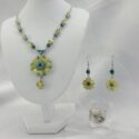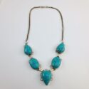 ![]() | (LOT: L251) - A vintage 18 inch necklace and earrings set with turquoise rhinestones, and what appears to be resin stones with iridescent shimmering throughout. Also a silver plated copper ring with a dragonfly motif and a turquoi... | ||