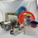 ![]() | (LOT: L203) - All New assorted kitchenware items. The items include metal colanders, plastic plates, bowls, cups, and measuring spoons. The collection seems to be a mixed lot of new and used kitchen utensils and containers. Cooling Racks | ||