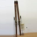 ![]() | (LOT: L239) - Wood skis with poles, leather bindings in good condition, ski is 3 ½”wide x 77” long | ||