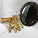 ![]() | (LOT: L244) - An assortment of nine heavy duty vintage wooden hangers. They don’t get any better than this. Also a vintage oval mirror with a solid wood frame and back. | ||