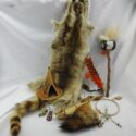 ![]() | (LOT: L267) - various, vintage souvenir Inuit items, including small animal pelt, birchbark wigwam, canoe, feather head-dress, beaded key-rings, handmade sled & doll, head needs repairing. | ||