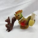 ![]() | (LOT: L280) - two vintage bobble-heads, flock rooster 5” tall toothpick holder, missing one container, & celluloid squirrel | ||
