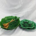 ![]() | (LOT: L288) - four green, cabbage- ware china, 2 Italian large, salad bowls, one with teak & china handled, salad servers. Two Wedgewood serving dishes, all with some chips, that have been well repaired. | ||