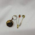 ![]() | (LOT: L290) - three stick pins, one with coral. Some of them could be gold, could not find any marks. Nicely carved chestnut key ring | ||