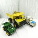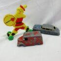 ![]() | (LOT: L291) - pair of old cars, well used, Dinky Toys, blue, Hudson Sedan, Meccano Ltd made in England, missing 2 tires, red body of van, names missing. and we have a vintage marching Santa with drum, on wheels 5”x4” | ||