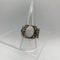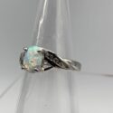 ![]() | (LOT: Q58) - A new and gorgeous man made white opal and sterling silver ring (marked and tested). It is a size 8. It also has small clear glass "accent stones" on either side of the opal. The band is not too wide, so it is v... | ||