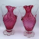 ![]() | (LOT: S150) - Set of glass (Probably Chalet) heritage line cranberry twisted collection one is cracked on neck but still structurally sound and a great display piece | ||