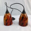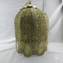 ![]() (LOT: K299) | ![]() Vintage Domed 8 oval slag stained glass Hanging Ceiling Light fixture with open cut embellishments throughout the metal shell to resemble Spinning Starlights when lit up, original condition, bottom opening of 12 3/4" wide, standing 17" without chain or top ceiling plate, consignor saw it working prior to removal and has not rehooked up, untested in 2025 (Click Here to see full auction listing) Bidding opens on December 01, 2025 12:00:00 AM | |