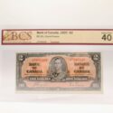 ![]() (LOT: K47) | ![]() Canada 1937 Two Dollar banknote, BCS certified Extra Fine 40. Gorgeous banknote with brilliant colour (Click Here to see full auction listing) Bidding opens on December 01, 2025 12:00:00 AM | |