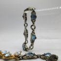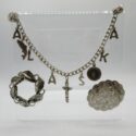![]() (LOT: G407) | ![]() A lovely gold tone necklace by Betsey Johnson. Measure 14” plus 3-inch extender. Skulls and roses blue rose flower Cluster with Y drop. A sterling silver necklace. Marked on a tag on both sides Il était une fois ( french saying meaning Once upon a time.) with a symbol of 3 people above it. There are the same marks on one of the front hammered pieces. Consignor is not sure as to the amount of silver content, as its not marked or stamped & weighs 47 grams (Click Here to see full auction listing) Bidding opens on November 10, 2025 12:00:00 AM | |